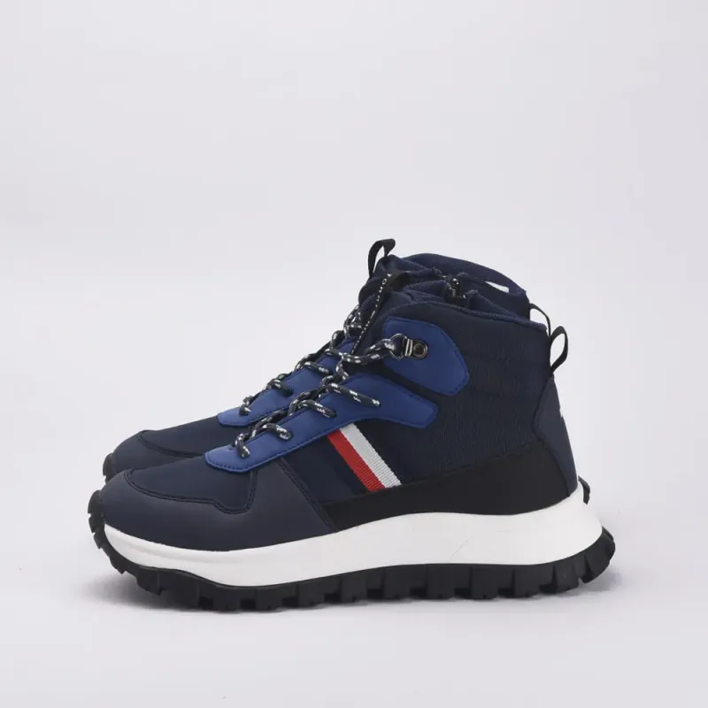 La sneaker T3B9-33680-1696A601 de Tommy Hilfiger répond à une esthétique urbaine affirmée tout en conservant une touche sportive raffinée. Conçue dans une teinte bleu marine profonde, elle présente une tige mi-montante (high-top) qui offre un bon maintien de la cheville, idéale pour les journées actives ou les looks casual stylés. Le laçage classique permet un ajustement personnalisé, tandis que des finitions contrastantes et la bande-signature de la marque apportent une signature visuelle reconnaissable.
