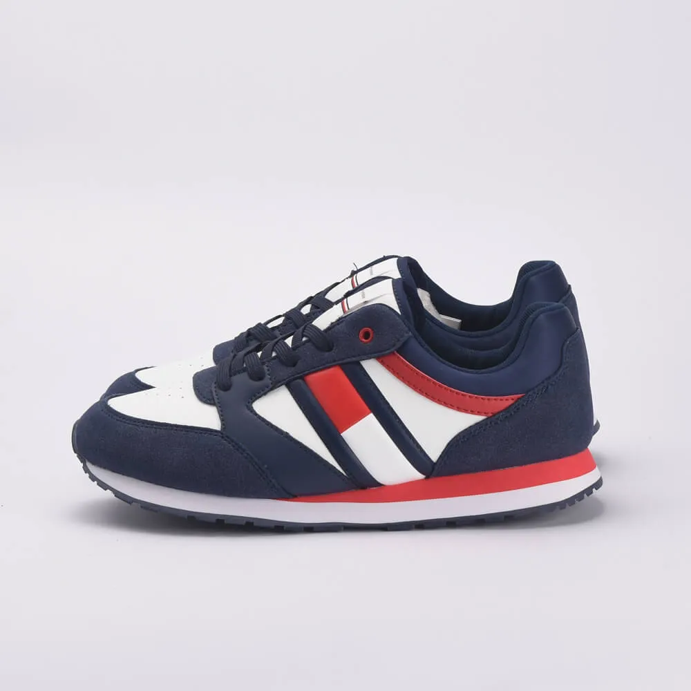 Découvrez cette sneaker basse signée Tommy Hilfiger, qui allie style et confort dans un design au quotidien. La tige, élégamment confectionnée dans une teinte bleu marine avec accents blanc et rouge emblématiques de la marque, procure une allure polyvalente et moderne. Le laçage classique garantit un maintien fiable et personnalisé, tandis que la construction légère de la semelle assure une marche fluide sur l'ensemble de la journée.
